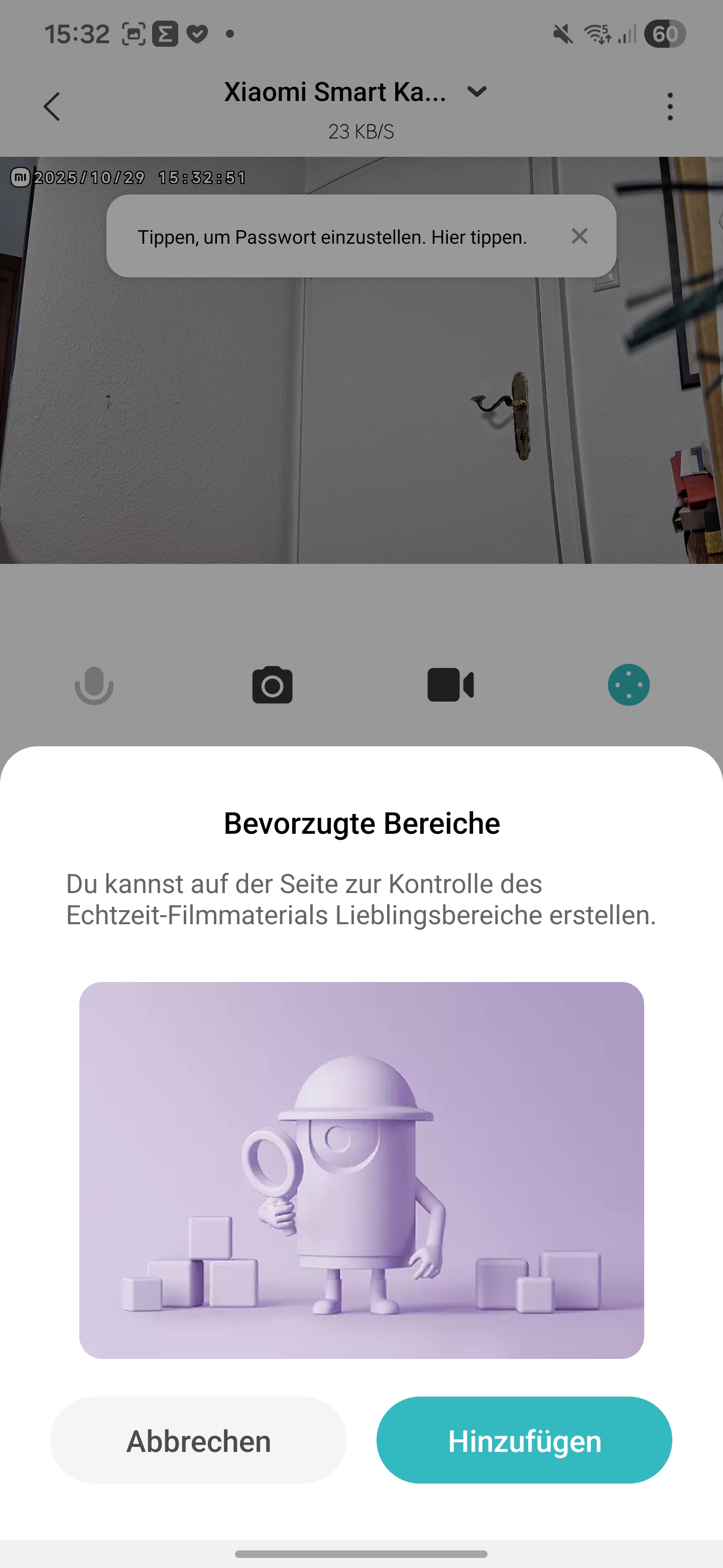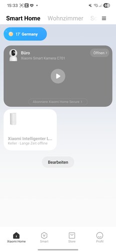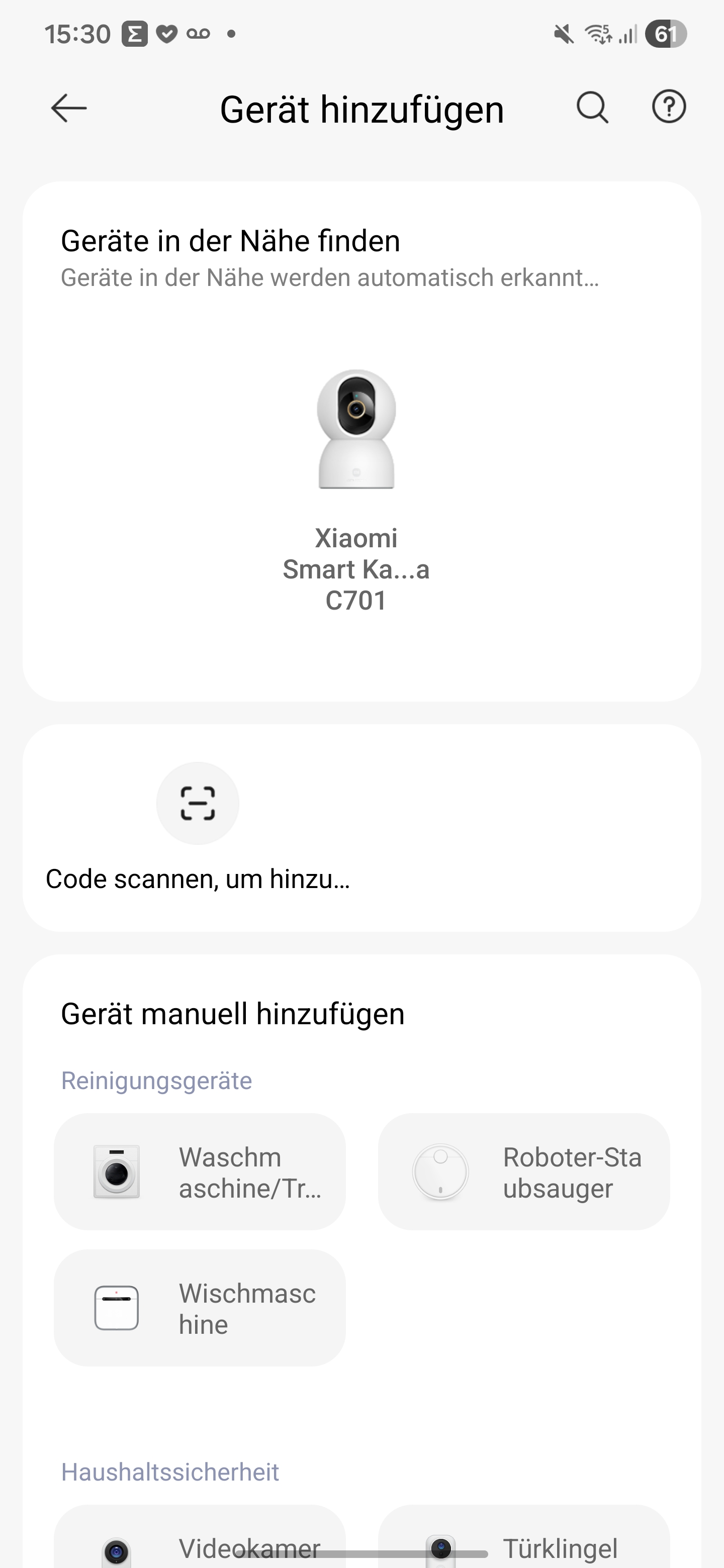Per la configurazione è necessaria l'applicazione Mi Home. Durante la ricerca di un nuovo dispositivo, la fotocamera è apparsa immediatamente nel nostro test e ha potuto essere accoppiata senza problemi. Per completare il processo, è necessario scansionare il codice QR sul lato inferiore della fotocamera.
