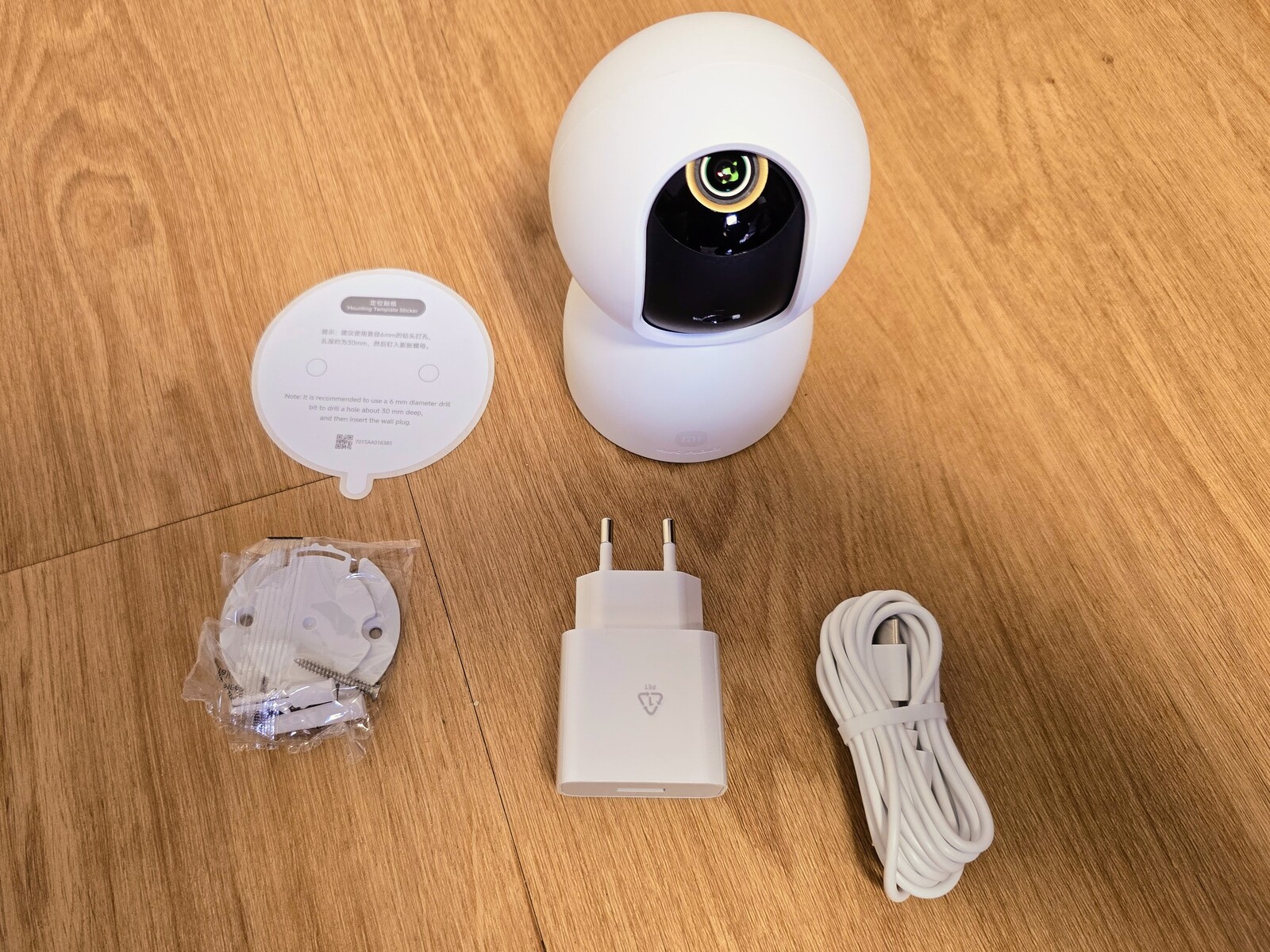 La fornitura della Smart Camera C701 è semplice. Oltre alla telecamera stessa, la confezione include un cavo USB e un adattatore di corrente. Il produttore fornisce anche una sagoma per il montaggio a parete o a soffitto.