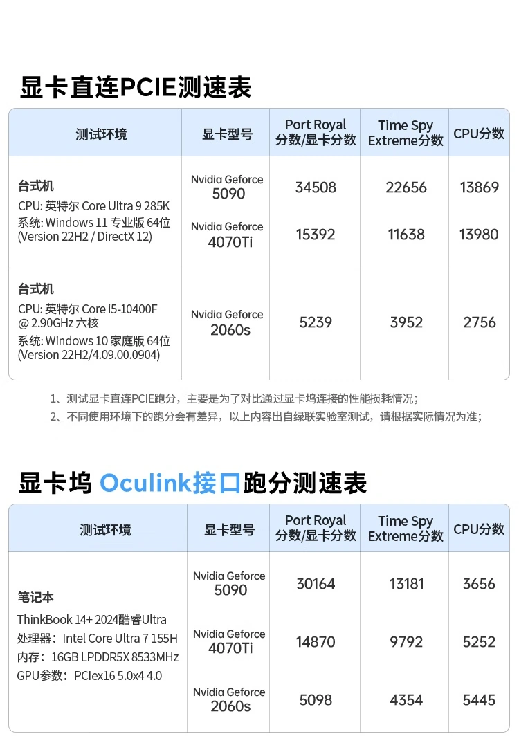 UGREEN ha condiviso i dati di benchmark per dimostrare come il dock si confronta con una configurazione tradizionale di computer desktop. Una scheda grafica RTX 5090 ha ottenuto 34.508 punti in un test Port Royal su un desktop, mentre la stessa scheda collegata a un laptop tramite la porta Oculink della LinkStation ha ottenuto 30.164 punti. Questo risultato indica che, sebbene una connessione diretta alla scheda madre sia ancora più veloce, la connessione Oculink è in grado di mantenere un alto livello di prestazioni per le configurazioni esterne.