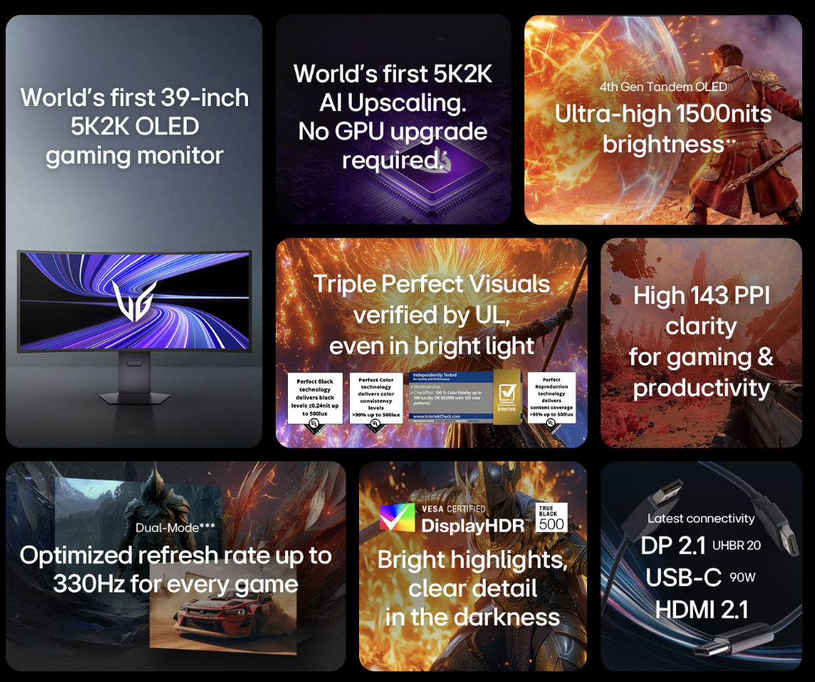 UltraGear OLED 39GX950B: LG conferma i dettagli di rilascio del nuovo monitor da gioco Tandem OLED