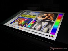 Anche se il display da 400 nits è più luminoso di quello da 250 nits del nostro modello Ryzen 5, non è ancora abbastanza luminoso per essere visibile all'aperto. Per fortuna, HP offre un pannello da 1000 nits ancora più luminoso per la serie EliteBook 845, come nella serie EliteBook 1030/1040.