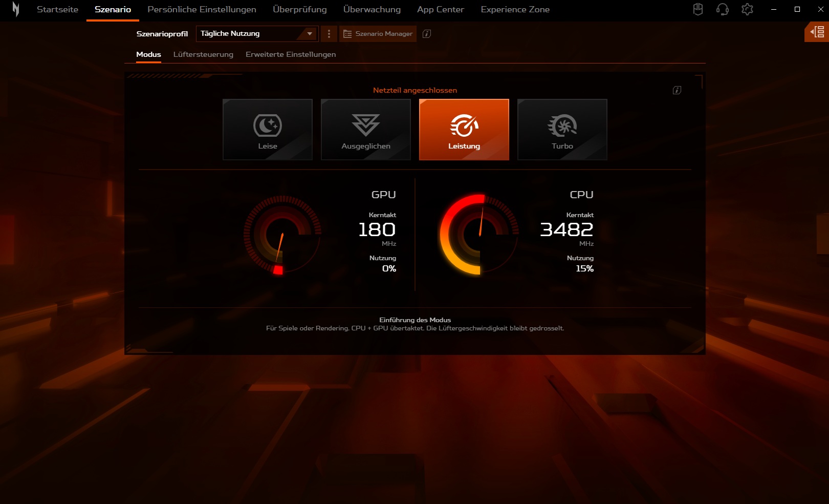 | Modalità | Silenzioso | Bilanciato | Prestazioni | Turbo |