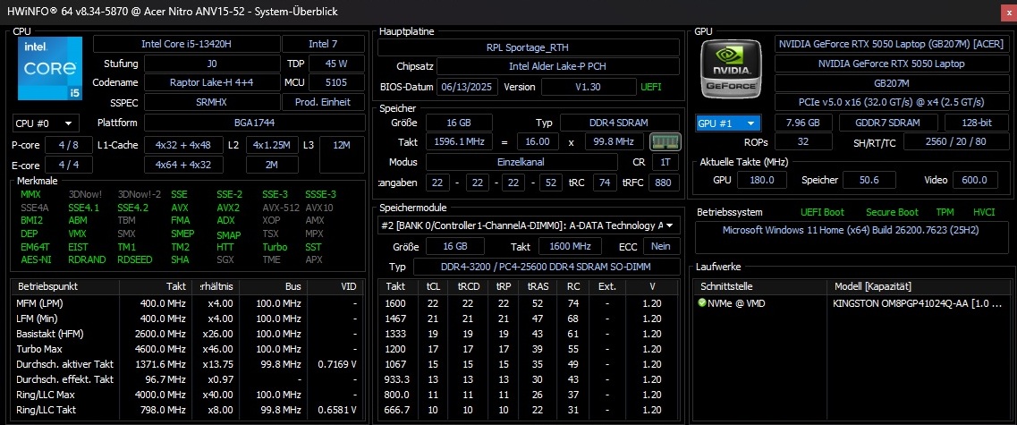 Poiché la RAM (2x 8 GB DDR4) e l'SSD (1 TB M.2) non sono saldati, sia la memoria che lo storage possono essere aggiornati se necessario. Purtroppo, le prestazioni di gioco sono un po' frenate, in quanto il Core i5-13420H e la RTX 5050 non sono in grado di realizzare appieno il loro potenziale in questa configurazione. Nel complesso, il portatile da 15 pollici manca di poco la valutazione "Buono".
