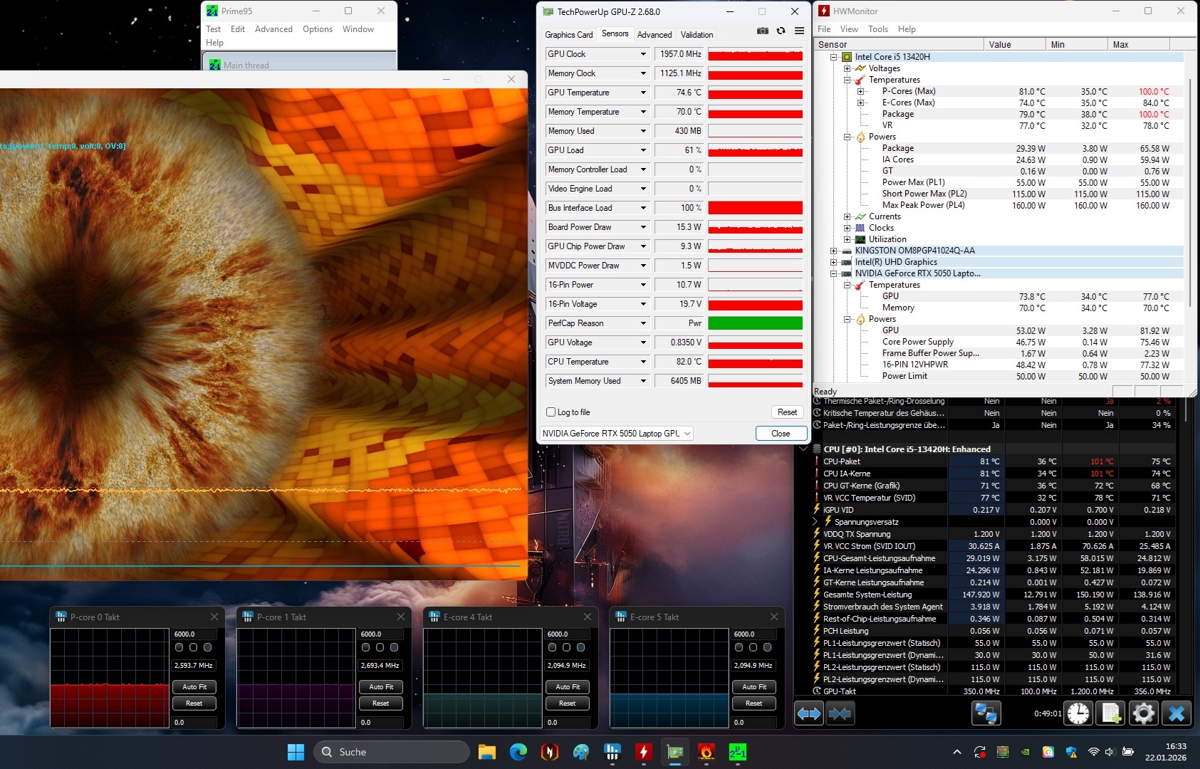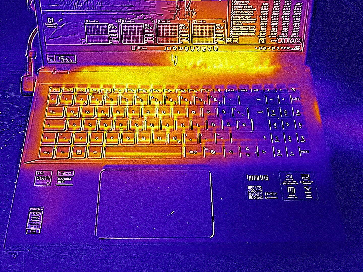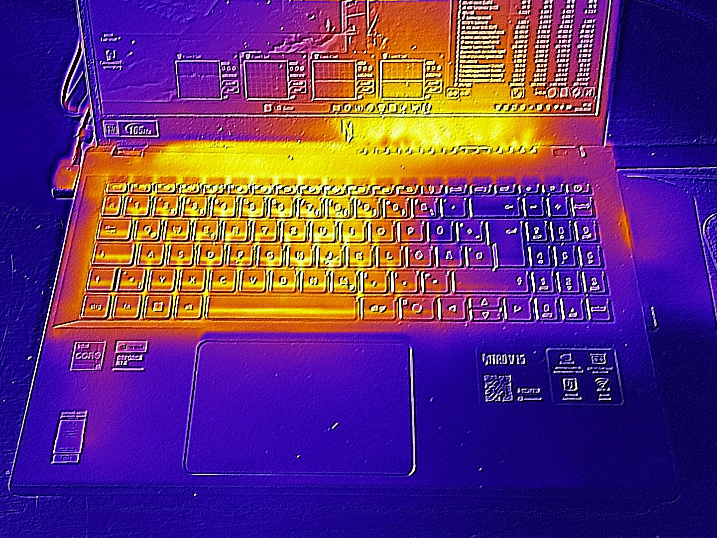 Le temperature sono in linea con le aspettative per un portatile RTX 5050. Nel funzionamento inattivo, lo chassis rimane piacevolmente fresco.
