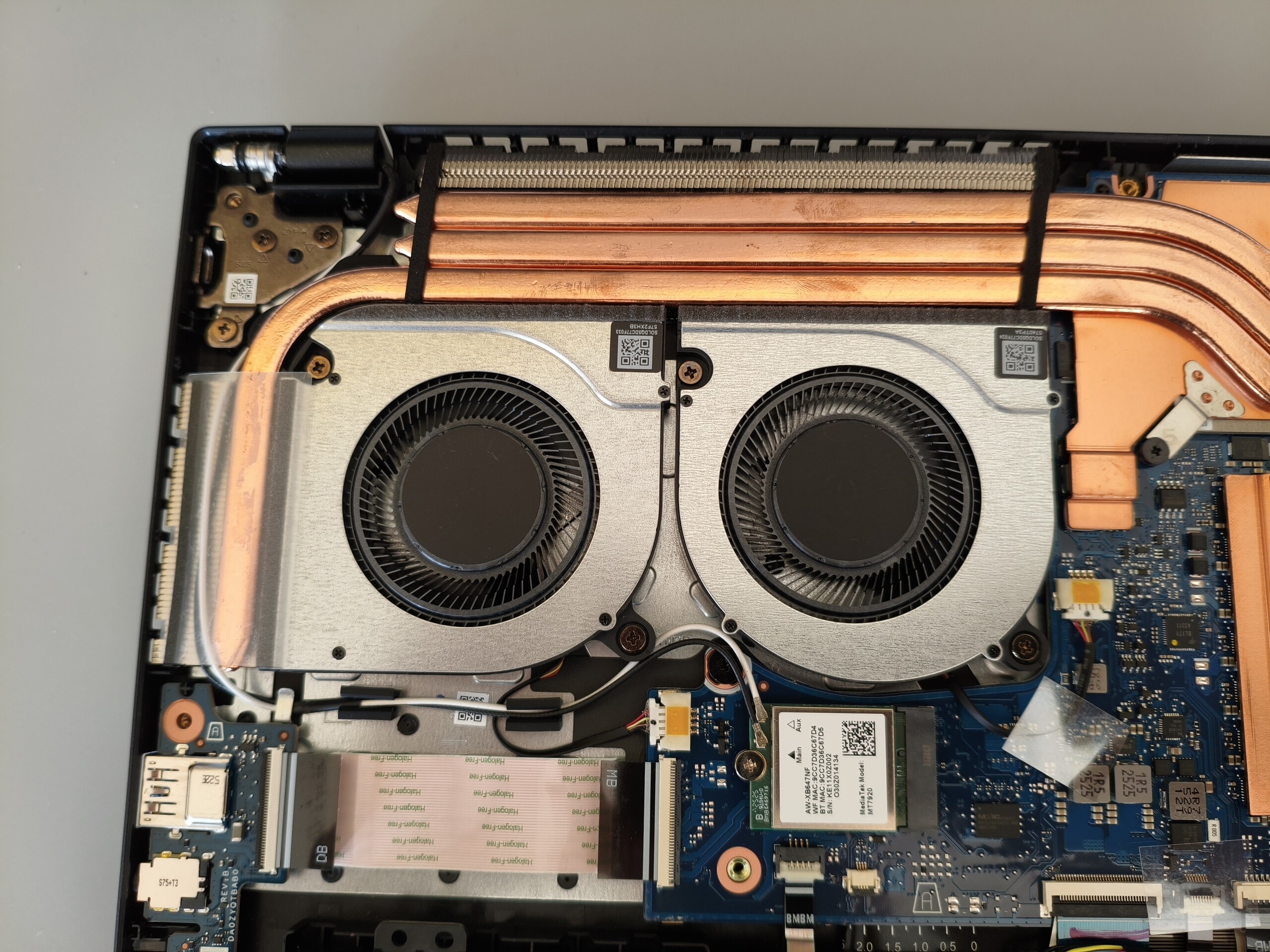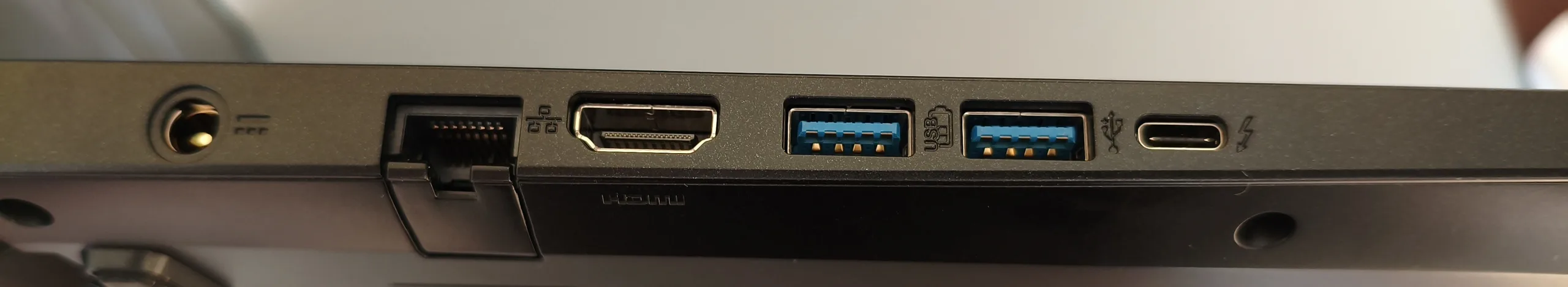 A parte l'assenza di un lettore di schede, la selezione delle porte lascia poco spazio alle critiche. La porta LAN Gigabit, l'uscita HDMI e il jack audio da 3,5 mm sono completati da tre porte USB-A e da un connettore Thunderbolt 4. È incluso anche uno slot per il lucchetto Kensington. Il modulo Wi-Fi 6E offre prestazioni mediocri e la webcam, piuttosto morbida, produce risultati altrettanto poco impressionanti. Per accedere agli interni è necessario rimuovere 11 viti Phillips. Le immagini dell'interno si trovano più avanti.
