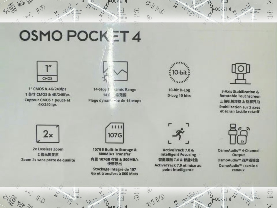 Ora, il mistero che circonda la risoluzione e la frequenza dei fotogrammi di DJI Osmo Pocket 4 sembra essere stato risolto. Mentre una recente clip in slow-motion condiviso da DJI su X accennava a uno slow-mo potenziato, è emersa una nuova immagine trapelata della confezione di vendita al dettaglio dell'Osmo Pocket 4, che mostra chiaramente l'unica specifica che i videografi aspettavano con ansia: 4K/240fps.