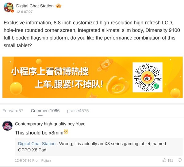 Ora, un commento del leaker sotto il post originale ha rivelato l'identità del tablet. Il commento era una risposta ad un altro utente di Weibo che aveva detto che il dispositivo era X8 Mini