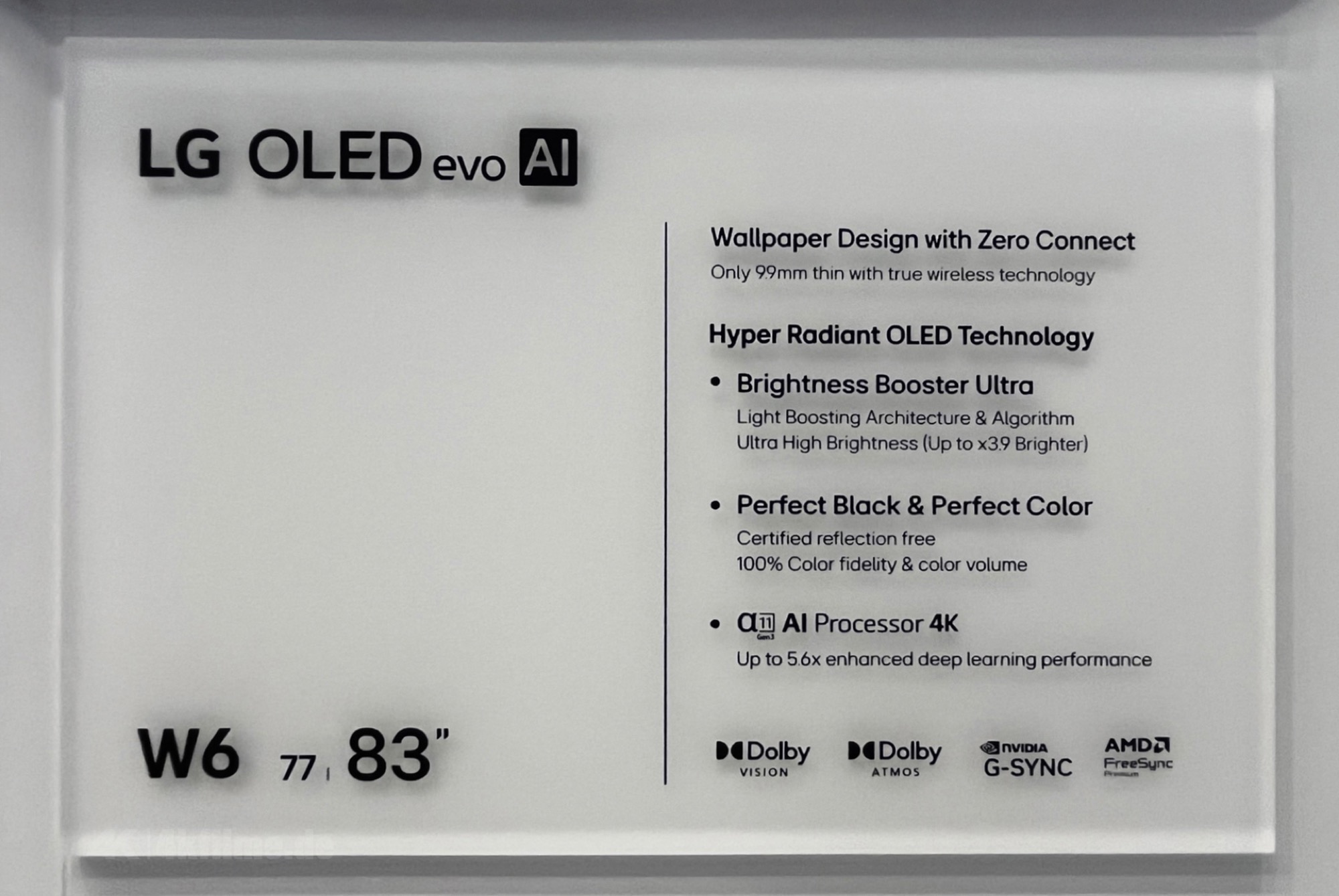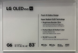 Non sorprende che la serie G si attenga al design a galleria, che consente di montare la smart TV a filo muro. L'LG G6 OLED sarà offerto con dimensioni dello schermo di 48, 55, 65, 77, 83 e 97 pollici. LG equipaggerà questi televisori con un nuovo pannello OLED in tandem che sarà commercializzato come pannello OLED "Hyper Radiant" con "Brightness Booster Ultra". A quanto pare, questa tecnologia rende il televisore 3,9 volte più luminoso rispetto al più economico LG B6 OLED, anche se il materiale di marketing trapelato non fornisce numeri esatti o un confronto diretto con il predecessore.