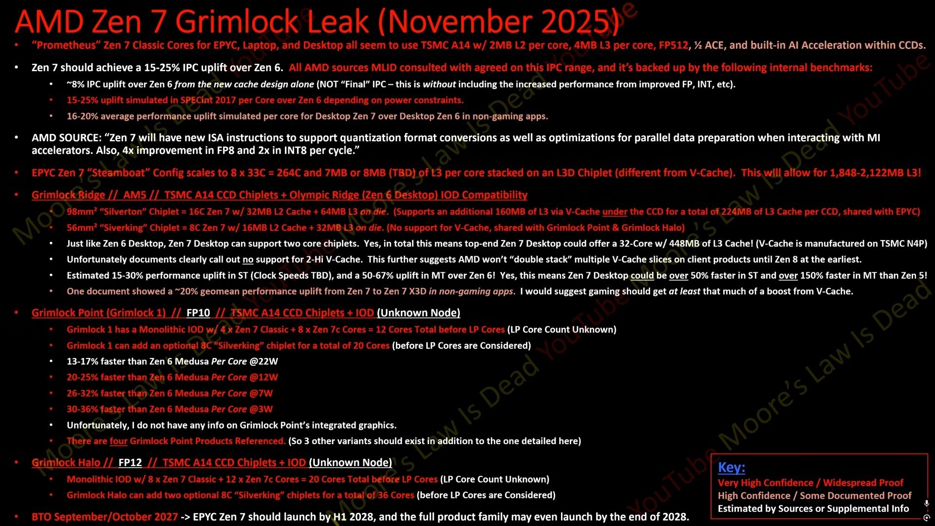AMD offrirà due chipset Zen 7 con il nome Grimlock. Silverton offre 16 core Zen 7, 32 MB di cache L2, 64 MB di cache L3 e il supporto di un tile V-cache 3D da 160 MB per CCD. Silverking è una versione ridotta con 8 core Zen 7, 16 MB di cache L2, 32 MB di cache L3 e supporto degli assi per la V-cache 3D. Silverton si troverà nelle CPU Epyc e Ryzen di fascia alta della serie 13.000, mentre Silverfish sarà prevalentemente utilizzato nei componenti dei laptop di potenza.