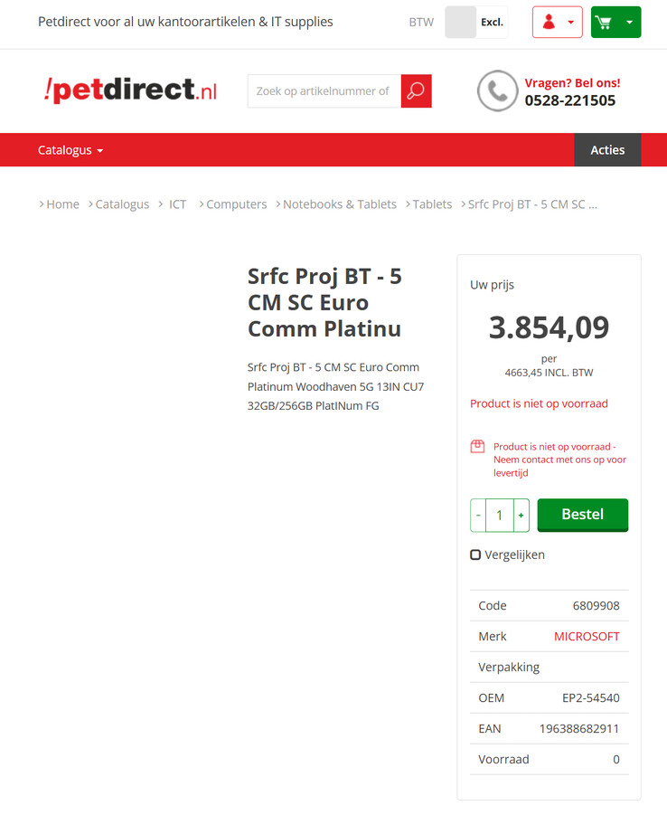 Ora, sembra che uno di questi nuovi dispositivi Surface sia apparso sul rivenditore olandese Petdirect. A prima vista, l'annuncio di Petdirect è piuttosto oscuro. Tuttavia, Quandt ha aggiunto che 'Woodhaven' è il nome in codice di Microsoft per il suo prossimo Surface Pro 'for Business'.
