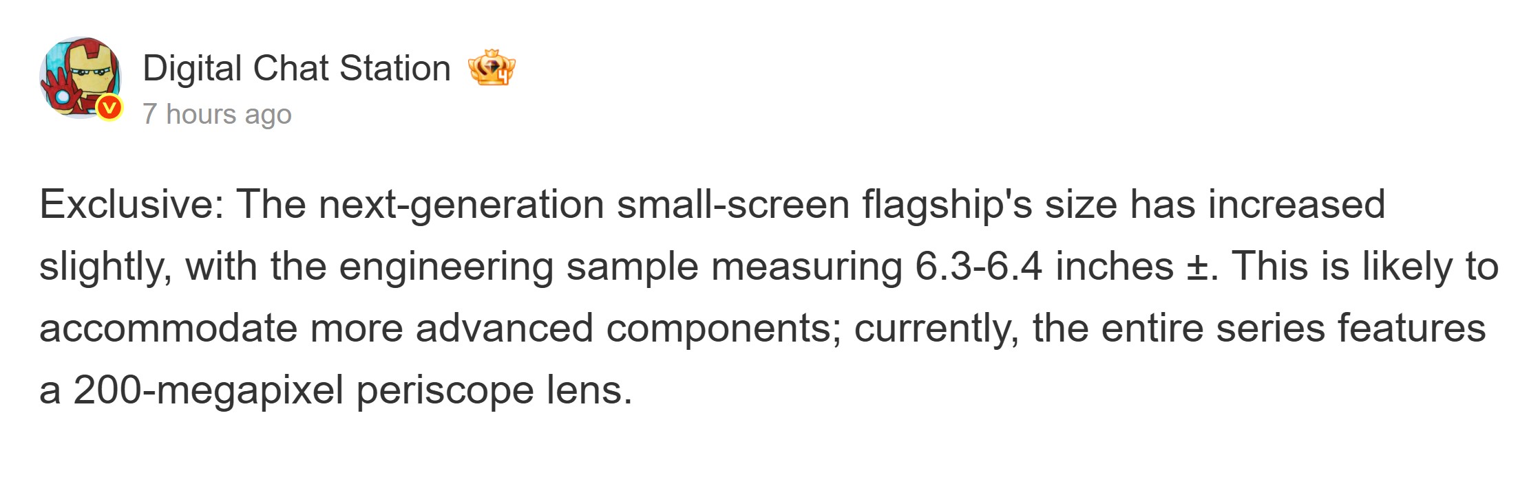 Come riferimento, lo Xiaomi 17 ha un display da 6,3 pollici, mentre il suo successore dovrebbe avere uno schermo da 6,4 pollici. L'informatore prevede che questo cambiamento è probabile perché il telefono sarà dotato di "componenti più avanzati" Ad esempio, allo stato attuale, l'intera linea è prevista con un display da 200 MP di fotocamera con teleobiettivo a periscopio.