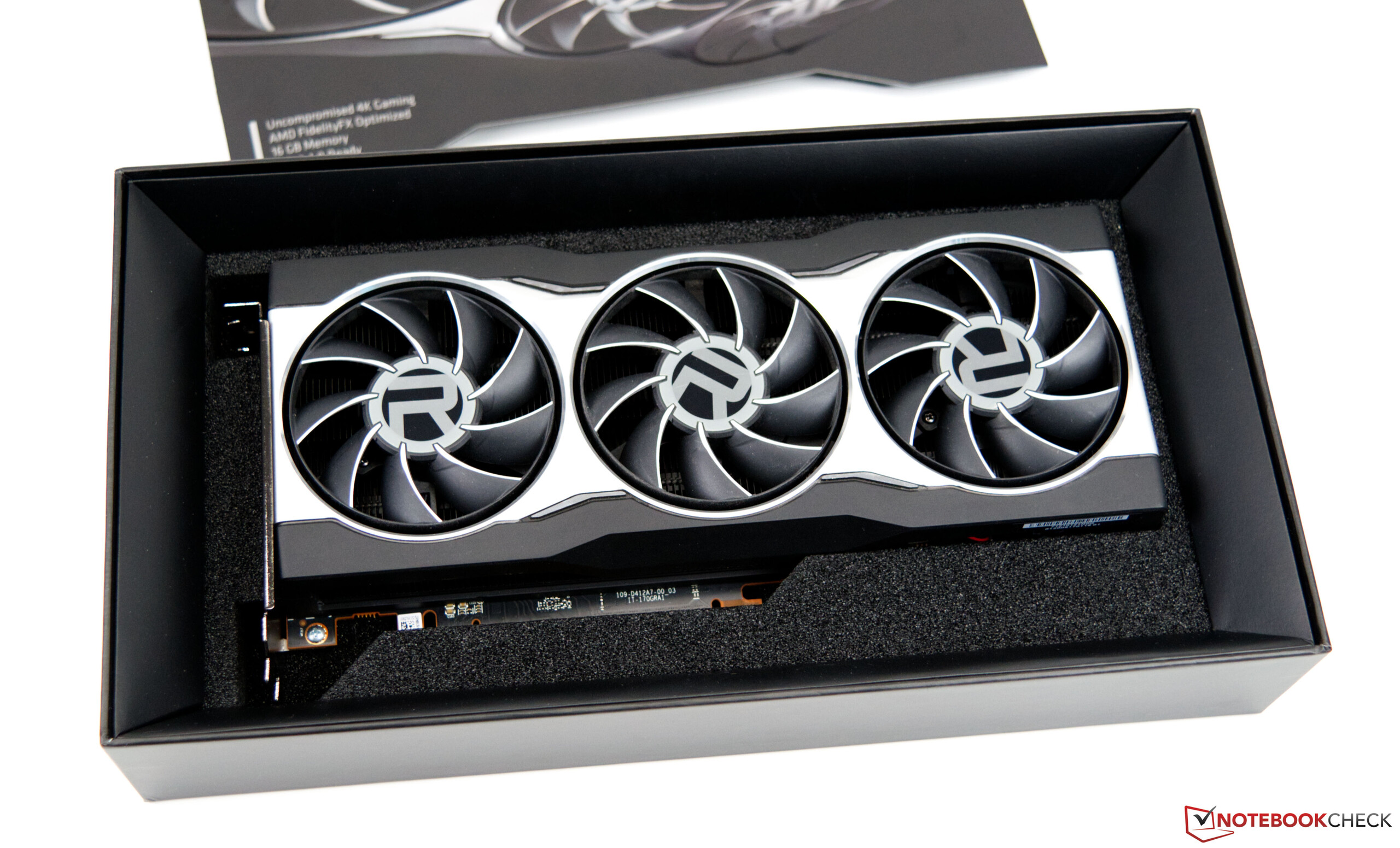 Per quanto riguarda il consumo di energia, la AMD Radeon RX 6800 è altrettanto economica della AMD Radeon RX 6700 XT. Rispetto all'attuale sviluppo dei TGP delle GPU di fascia alta, il TGP di questo modello di 250 watt è abbastanza modesto. La qualità costruttiva del modello di riferimento sembra eccezionalmente alta. Le piastre anteriore e posteriore sono in metallo e offrono un'ottima aptica. La scheda grafica è adornata con una scritta "Radeon" illuminata. AMD raccomanda PSU valutati per almeno 650 watt. Per i display, la AMD Radeon RX 6800 offre una porta HDMI, due DisplayPorts e una porta USB type-C