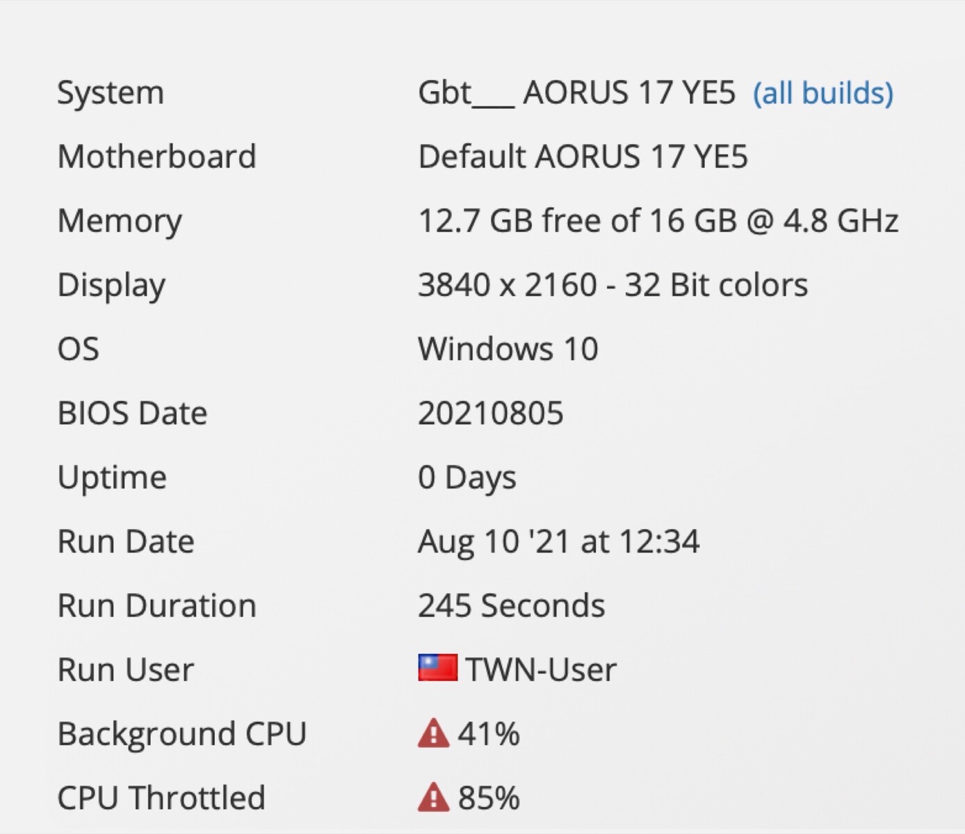 Il lancio dei processori Intel Alder Lake per laptop si sta avvicinando, con dettagli sulla loro gerarchia e TDP già trapelati. Ora, un nuovo Gigabyte Aorus 17G è stato avvistato suUserBenchmarkun dispositivo che l'ultima volta abbiamo recensito l'ultima volta a giugno. Mentre abbiamo recensito l'AORUS 17G YD,UserBenchmarkmostra che Gigabyte sta sviluppando l'AORUS 17G YE5 con processori Alder Lake e RAM veloce.