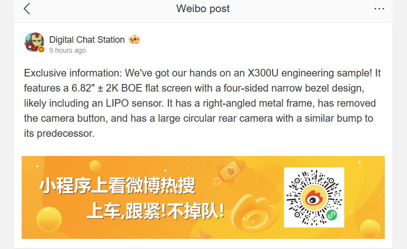 L'ultima fuga di notizie proviene da Digital Chat Stationche sostiene che vivo X300 Ultra utilizzerà un display OLED BOE LTPO piatto da 6,82 pollici con una risoluzione 2K. Se fosse esatto, questo segnerebbe un allontanamento dai pannelli curvi utilizzati sull'X200 Ultra.