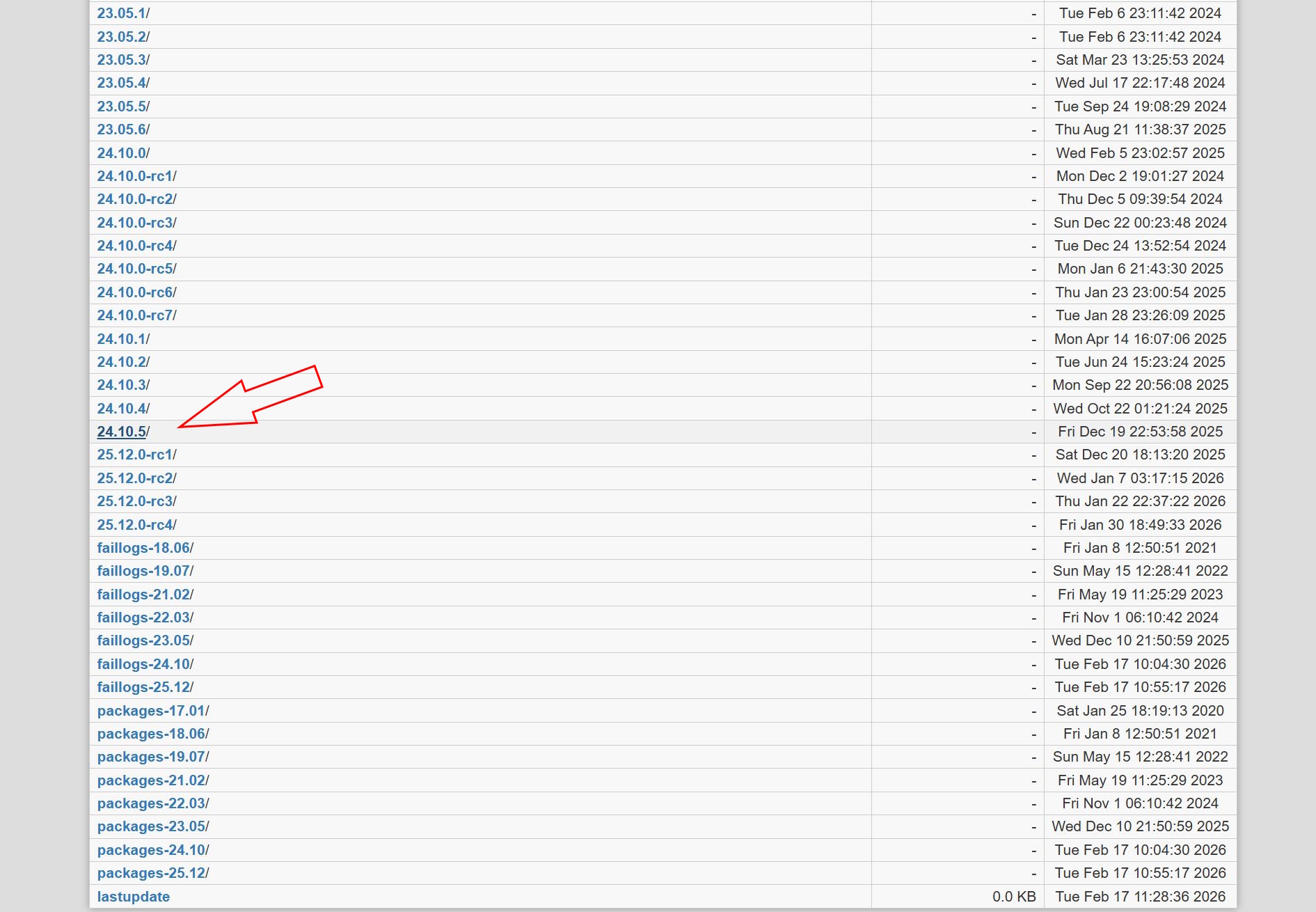 Per prima cosa, dovrà scaricare l'immagine di OpenWRT. A partire da febbraio 2026, l'ultima versione stabile è la versione 24.10.5.