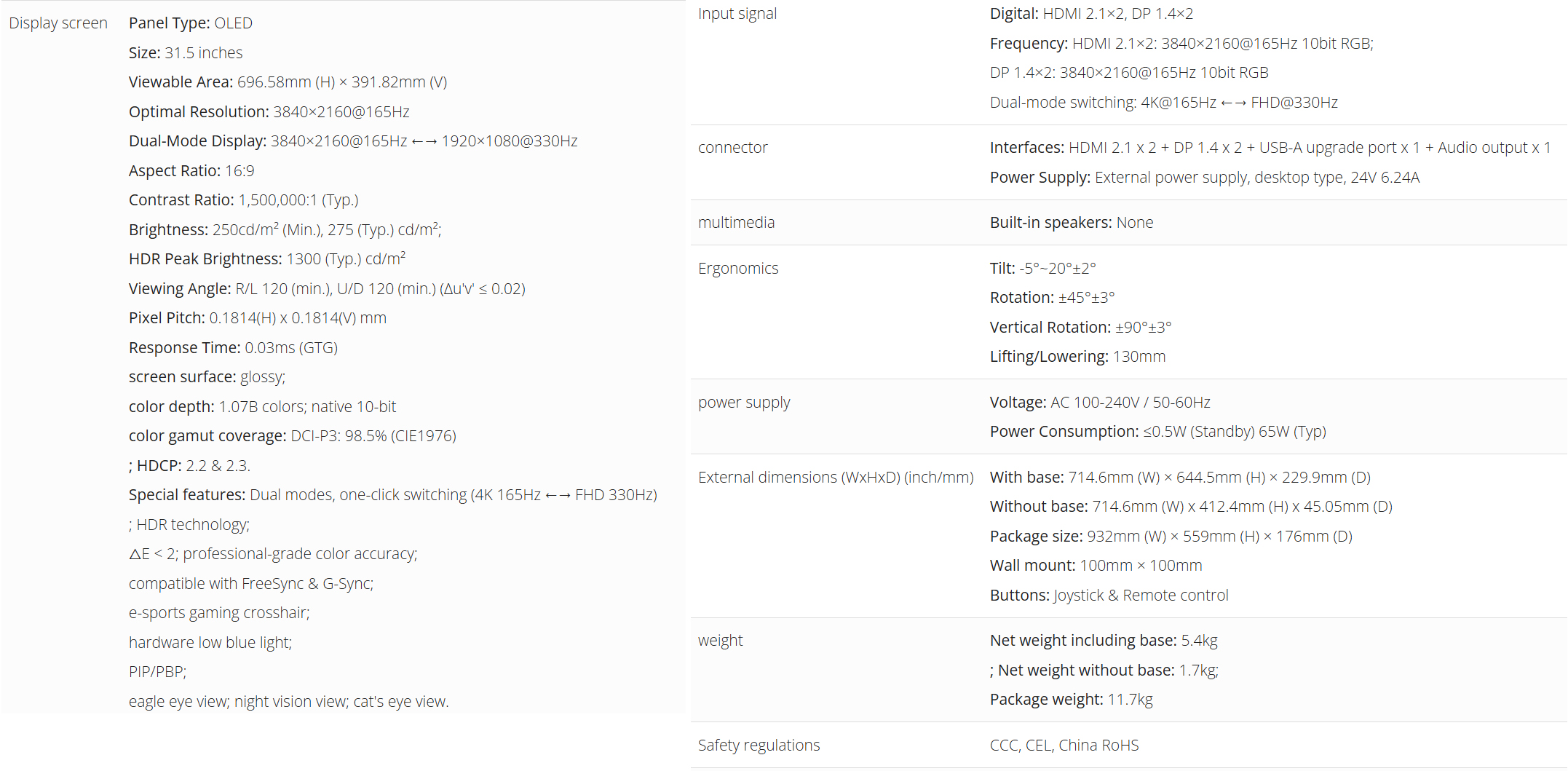 Mentre il monitor da gioco più recente mantiene un pannello OLED con doppia modalità, può offrire una frequenza di aggiornamento di 330 Hz in modalità di risoluzione 1080p e una frequenza di aggiornamento di 165 Hz in 4K. Per fare un confronto, il monitor XG323-4K-OLED2 che è stato lanciato l'anno scorso, può arrivare a 480 Hz in modalità FHD e 240 Hz in 4K.