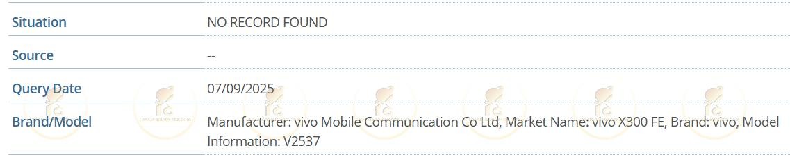 Un telefono con il numero di modello "V2537" è stato avvistato per la prima volta nel database IMEI, rivelando che questo numero di modello appartiene al modello Vivo X300 FE. Lo smartphone con lo stesso numero di modello ha anche recentemente ottenuto la certificazione della Commissione Economica Eurasiatica (CEE), lasciando intendere un lancio nei mercati europei. Tuttavia, la certificazione non rivela alcuna specifiche o una data di uscita concreta, ma è un forte indizio che il rilascio globale dell'X300 FE è in programma.