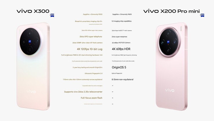 Vivo stessa conferma che il Vivo X300 non è un successore diretto del Vivo X200, ma piuttosto del Vivo X200 Pro Mini, in quanto una scheda tecnica ufficiale lo confronta direttamente con la precedente fotocamera compatta Zeiss. Questo elenco confronta alcune importanti specifiche della compatta Pro Mini con la nuova Vivo X300.
