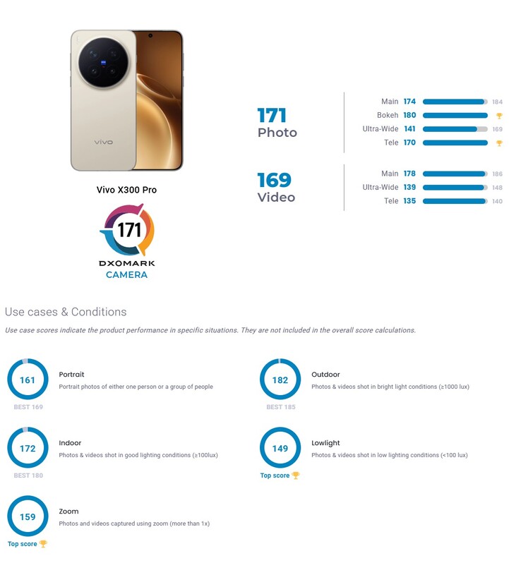 A differenza del test della fotocamera di Honor Magic 8 Pro di qualche giorno fa, che non ha portato ad un nuovo punteggio massimo in nessuna disciplina, Vivo X300 Pro si aggiudica il primato nelle sottocategorie fotografiche teleobiettivo e bokeh, nonché nello zoom e nelle impostazioni di scarsa illuminazione. I recensori lodano l'esposizione costantemente accurata e la gamma dinamica, nonché il corretto bilanciamento del bianco con toni naturali della pelle nelle foto e nei video. Il livello di dettaglio è elevato in tutte le situazioni, soprattutto negli scatti con lo zoom. Vengono evidenziati anche la decente stabilizzazione video e il bokeh naturale nei ritratti.