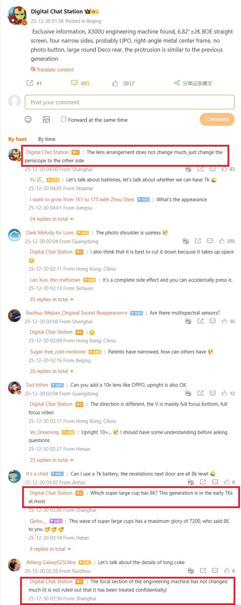 Oltre a questa buona notizia proveniente dai database CEE, l'affidabilissimo leaker Digital Chat Station ha anche fornito alcune specifiche aggiuntive sul Vivo X300 Ultra. Come abbiamo precedentemente riportatovivo X300 Ultra è dotato di un display OLED piatto da 6,82 pollici di BOE con cornici sottili e bordi piatti in metallo, ma a quanto pare non ha più un pulsante di scatto dedicato alla fotocamera. Per alcuni utenti, questo sarebbe sicuramente un importante downgrade rispetto al Vivo X200 Ultra. Vivo potrebbe prendere spunto da Xiaomi, dato che lo Xiaomi 17 Ultra Leica Edition non ha un pulsante di scatto, in quanto Xiaomi vuole vendere accessori opzionali.