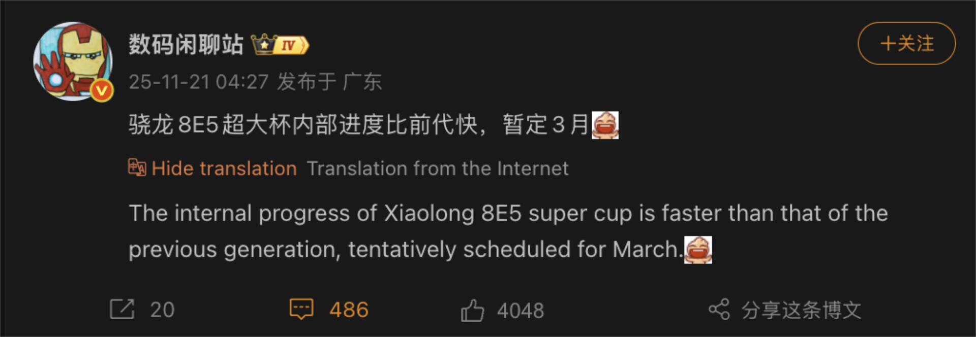 Scrivendo su Weibo, il leaker afferma che lo sviluppo interno del prossimo smartphone Ultra di Vivo sta 'progredendo più velocemente del suo predecessore'. Dotato di uno Snapdragon 8 Elite Gen 5 x300 Ultra è apparentemente 'previsto per marzo', ovvero solo 11 mesi dopo il debutto dell'X200 Ultra in Cina.