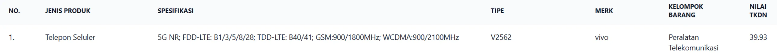 Subito dopo Natale, Vivo ha certificato uno smartphone con il numero di modello V2562 presso la Commissione Economica Eurasiatica (CEE). Spesso, una certificazione CEE da parte di un produttore importante è un segno sicuro che rilascerà un dispositivo, piuttosto che lasciarlo languire nella sala di taglio. Ora, lo stesso dispositivo è apparso nel database pubblico del TKDN in Indonesia.