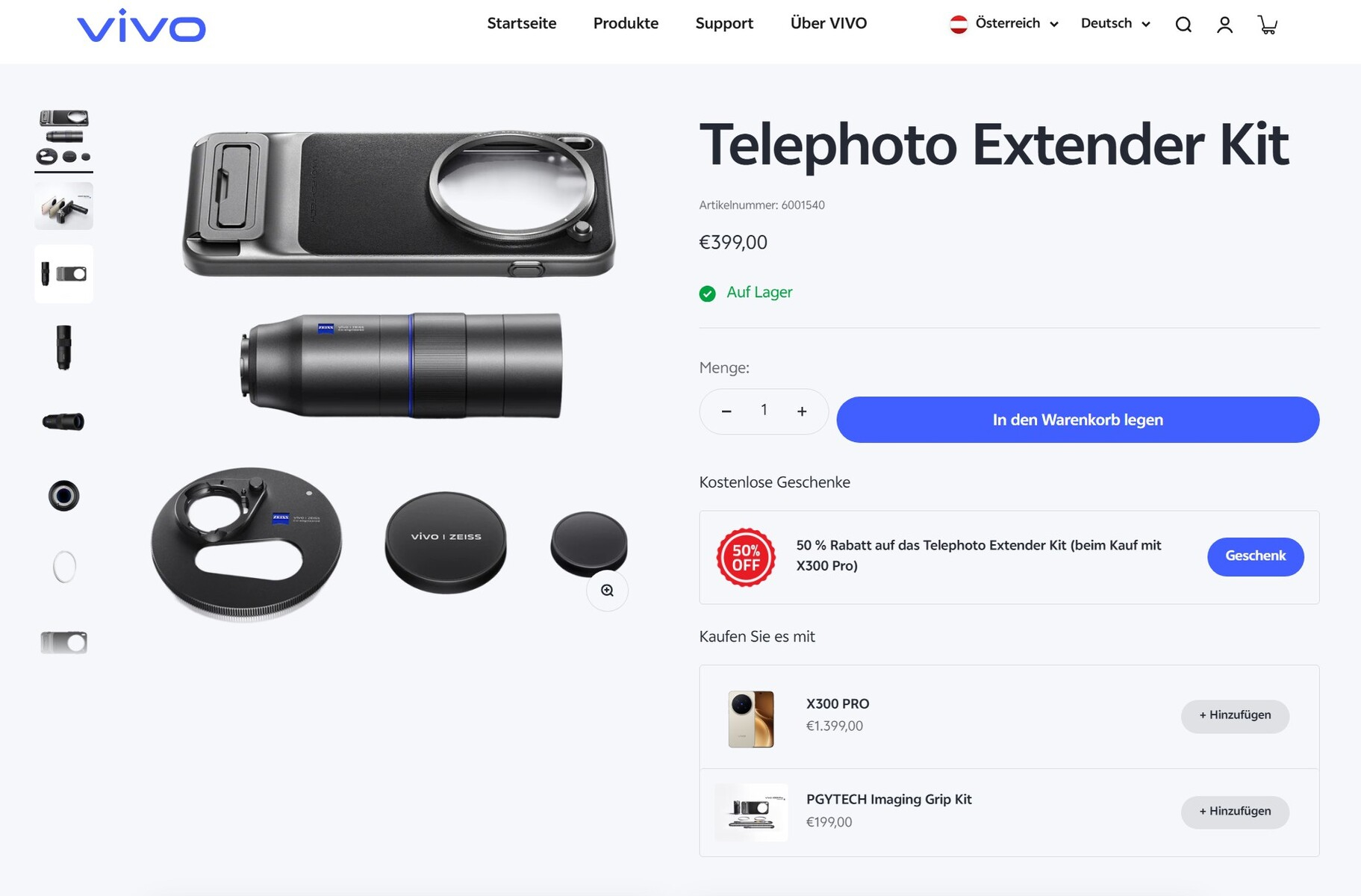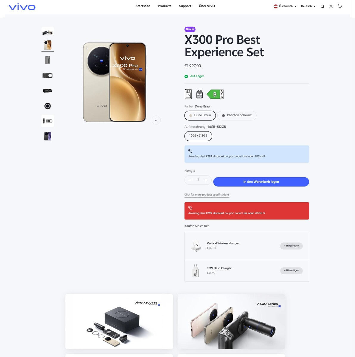 Come abbiamo discusso all'inizio di questa settimana, Oppo ha prezzato i modelli Find X9 e Find X9 Pro a 999 euro e 1.299 euro nella zona euro. Per qualche motivo, Vivo ha applicato un sovrapprezzo di 50 euro sui suoi smartphone comparabili, nonostante li abbia immessi sul mercato più tardi di Oppo. Di conseguenza, la serie X300 partirà da 1.049 euro nella zona euro, prima di includere gli accessori come il kit di estensione del teleobiettivo, che sarà venduto a 399 euro, il che lo rende più economico di 50 euro rispetto all'equivalente di Oppo. Tuttavia, Vivo offrirà diversi codici sconto al momento del lancio, che dovrebbero ridurre i prezzi su tutta la linea. Per maggiori dettagli, consulti le immagini qui sotto.