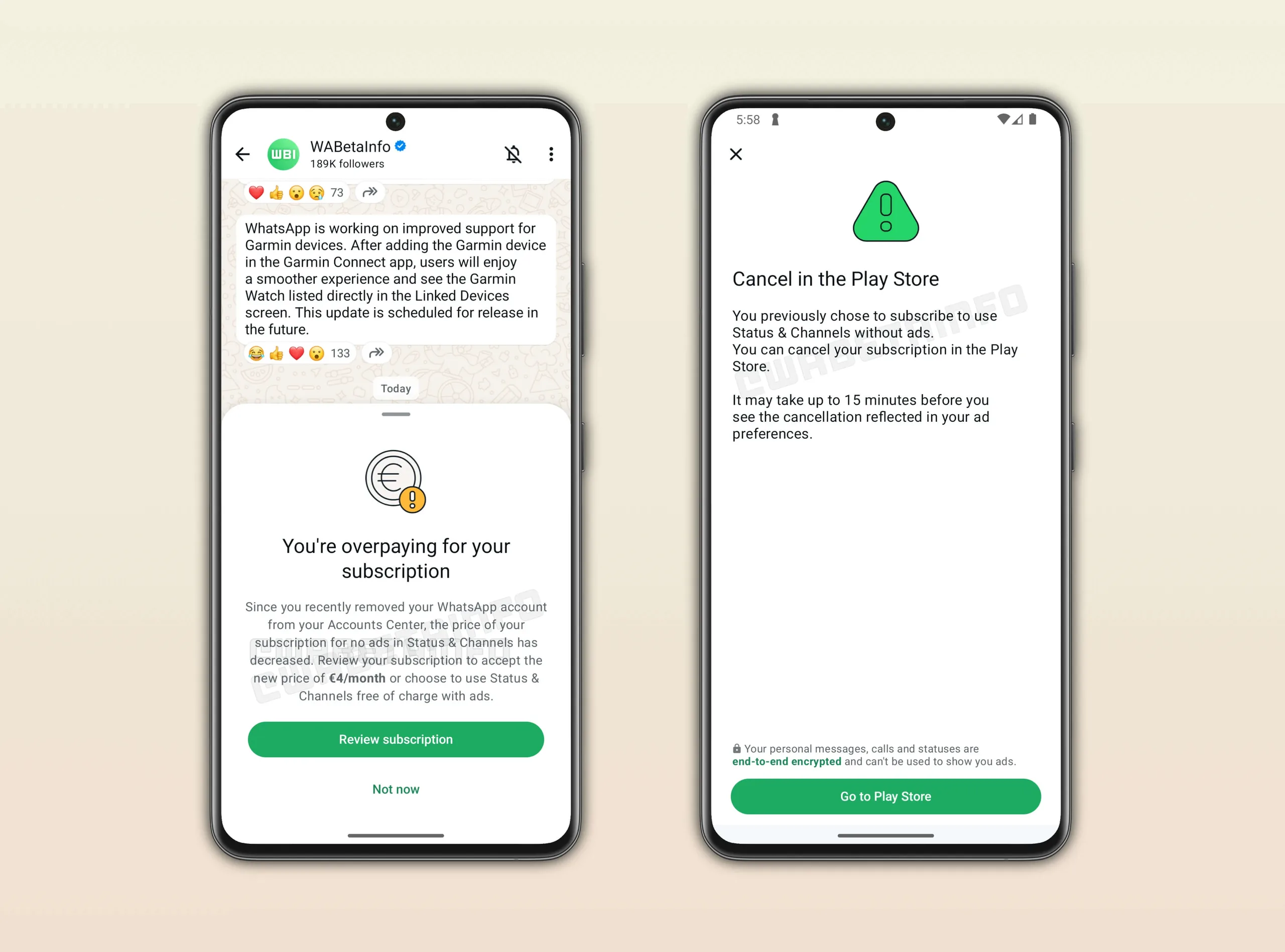 Gli utenti che non vogliono vedere gli annunci potrebbero pagare un abbonamento mensile di 4 euro. Le funzioni principali di WhatsApp, come l'invio di messaggi e le chiamate, dovrebbero rimanere gratuite per tutti. Per il momento, ciò significa che gli annunci pubblicitari continueranno ad essere visualizzati negli aggiornamenti di stato, così come i suggerimenti di canali interessanti appariranno di tanto in tanto. Molti utenti probabilmente lo troveranno piuttosto distraente.