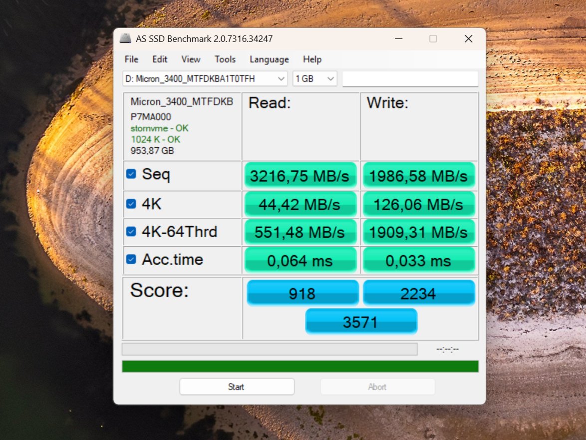 E qual è lo scopo di questo intero processo? La risposta dipende molto dalla configurazione specifica del sistema. Secondo un rapporto di di Heiseè stato possibile ottenere un aumento del 10-15% della velocità dei dati con un'unità SSD PCIe 4.0 in una workstation. Come testato dalla pubblicazione tedesca, anche un'unità SSD PCIe Gen 3.0 ha beneficiato di questo hack. Il mio laptop Acer Swift 16 Edge è dotato di due SSD PCIe 4.0 Micron 3400, uno da 1 TB e l'altro da 512 GB di capacità di archiviazione.