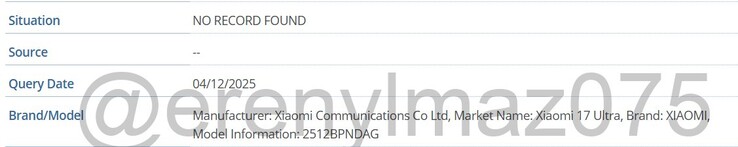 Le voci dicono che il nuovo modulo periscopico non contenga un semplice teleobiettivo, ma una vera e propria fotocamera con zoom ottico e lunghezza focale variabile, anche se questo non è ancora stato confermato. Ciò che è abbastanza certo è che ora possiamo aspettarci di vedere lo Xiaomi 17 Ultra in Europa. Mentre la maggior parte degli osservatori lo aveva già previsto, il modello globale con il numero 2512BPNDAG è stato scoperto per la prima volta nel database IMEI, come dimostra lo screenshot qui sotto. Pertanto, ci aspettiamo che lo Xiaomi 17 Ultra venga lanciato in Cina a dicembre e a livello globale a marzo 2026