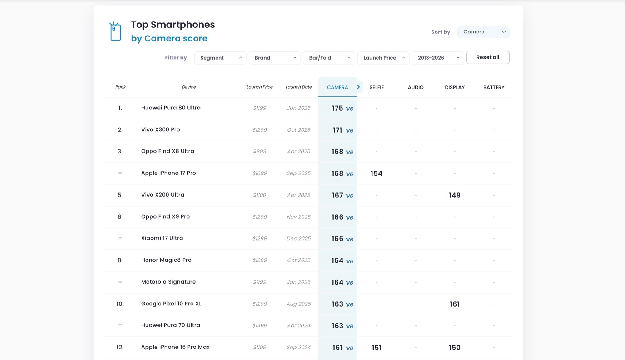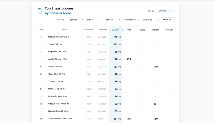 Questo punteggio è sufficiente solo per il sesto posto nell'attuale classifica degli smartphone, dietro all' Apple iPhone 17 Proche si trova al quarto posto con 168 punti, e molto indietro rispetto al Huawei Pura 70 Ultrache occupa il primo posto con 175 punti. Più precisamente, Xiaomi non ottiene nemmeno il punteggio massimo in nessuna categoria. L'iPhone 17 Pro è in vantaggio soprattutto a causa dei problemi video dello Xiaomi 17 Ultra.