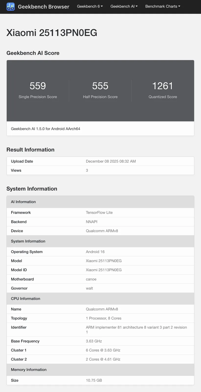 In particolare, Xiaomi ha certificato lo Xiaomi 17 per la vendita presso la National Broadcasting and Telecommunications Commission (NBTC) in Tailandia. In definitiva, la NBTC collega il 25113PN0EG solo allo Xiaomi 17. Tuttavia, questo numero di modello globale è apparso contemporaneamente su Geekbench. Da questo elenco, possiamo dedurre che lo Xiaomi 17 globale sarà dotato del regolare Snapdragon 8 Elite Gen 5 proprio come la sua controparte cinese. Non solo, ma lo Xiaomi 17 sarà dotato di 12 GB di RAM anche a livello internazionale.