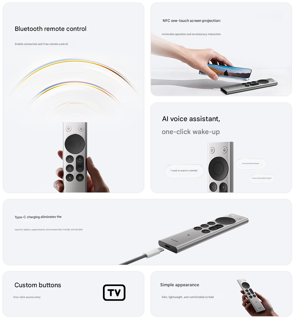 Una batteria da 300 mAh alimenta lo Xiaomi Bluetooth Remote 2 Pro e si ricarica tramite Type-C. Per quanto riguarda la compatibilità, l'azienda fa notare che è ampiamente compatibile con i televisori Redmi e TV Xiaomi e TV box, e con il Bluetooth 5.4, il marchio promette una connettività stabile.