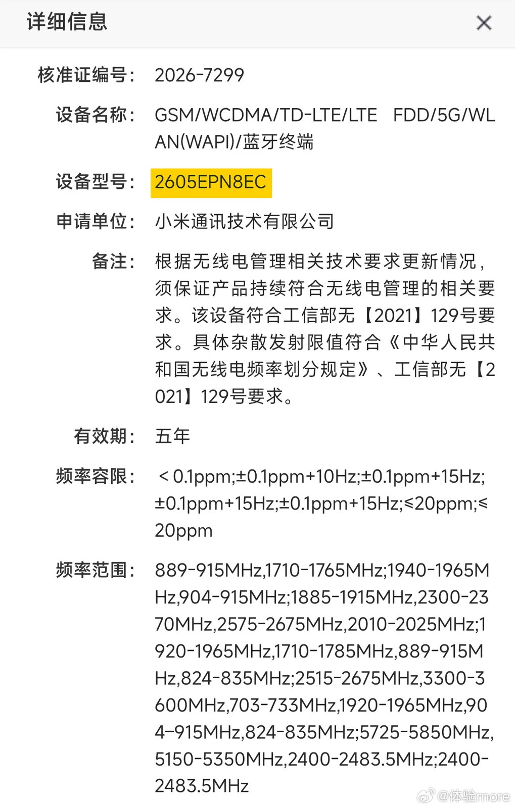 In particolare, diverse fonti hanno osservato che l'SRRC ha certificato il misterioso '2605EPN8EC' per la vendita in Cina. Dal solo numero di modello, possiamo dedurre che Xiaomi intende offrire il dispositivo nel suo mercato nazionale nel maggio 2026. A questo punto, però, resta da vedere se ciò avverrà.