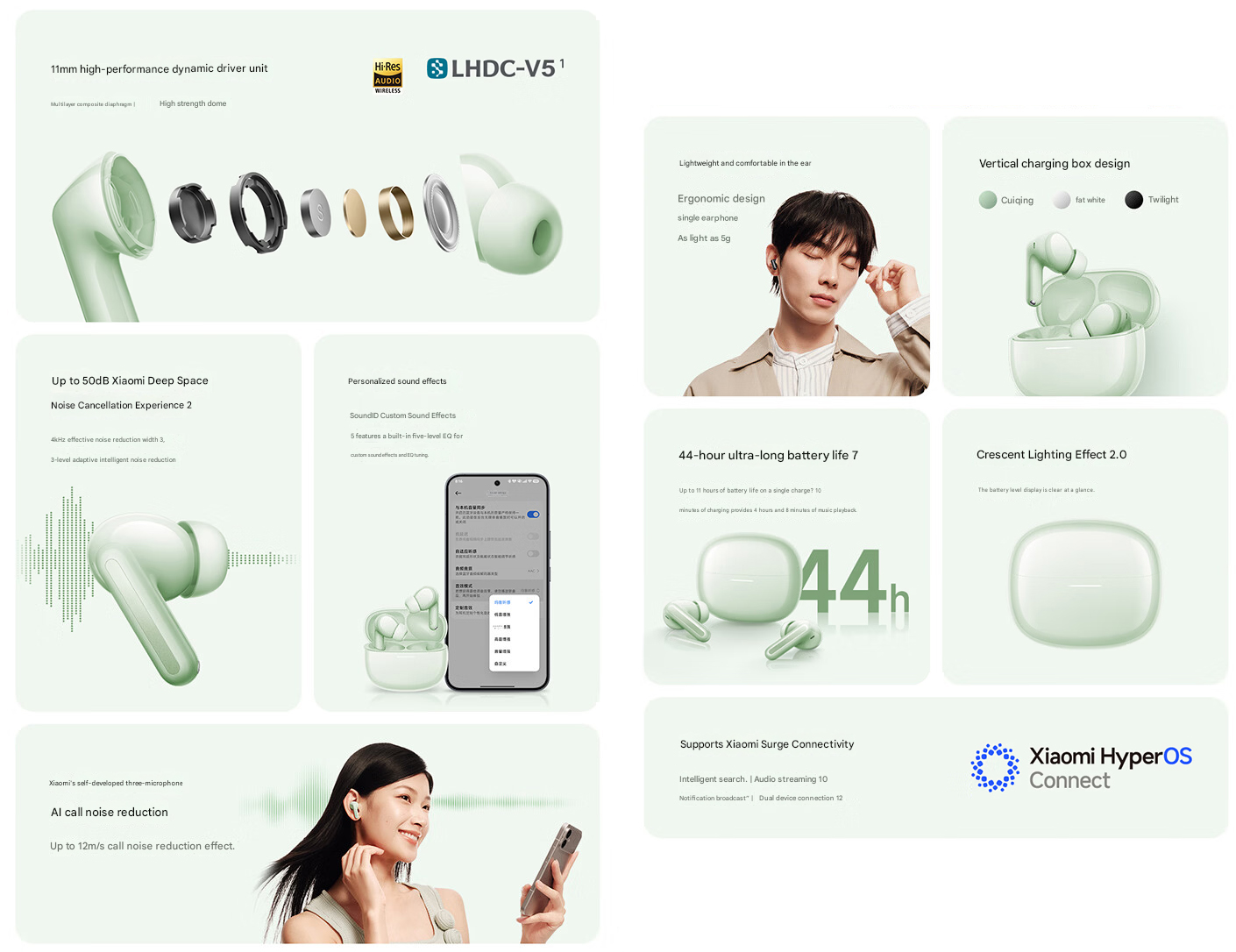 C'è una funzione di personalizzazione del suono, che consente agli utenti di creare un soundID personalizzato che corrisponde alle loro preferenze di ascolto. Xiaomi promette anche un'esperienza di chiamata chiara grazie alla configurazione a tre microfoni, abbinata a un algoritmo di riduzione del rumore AI.