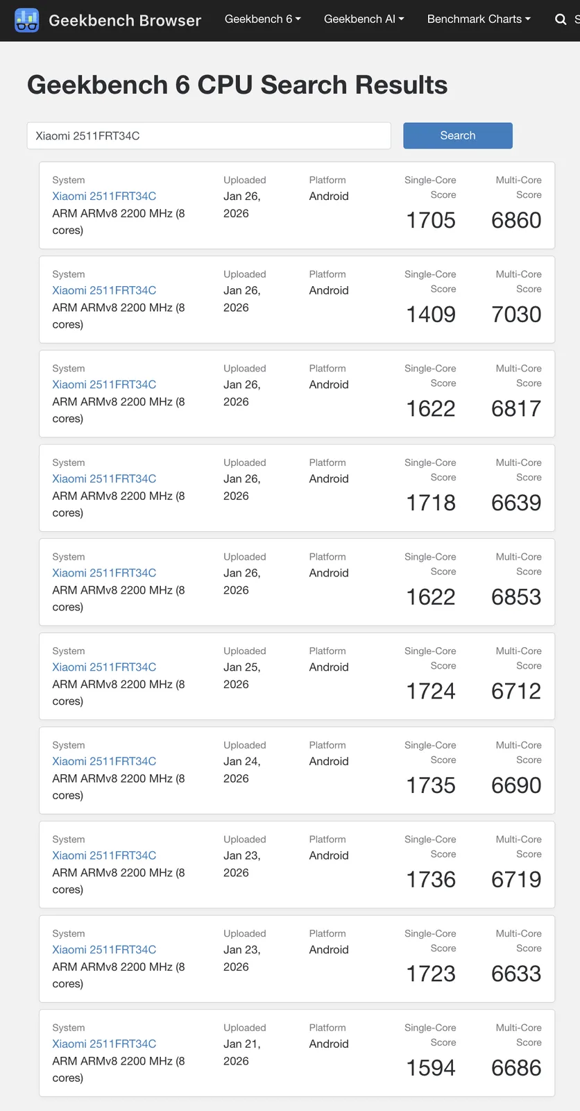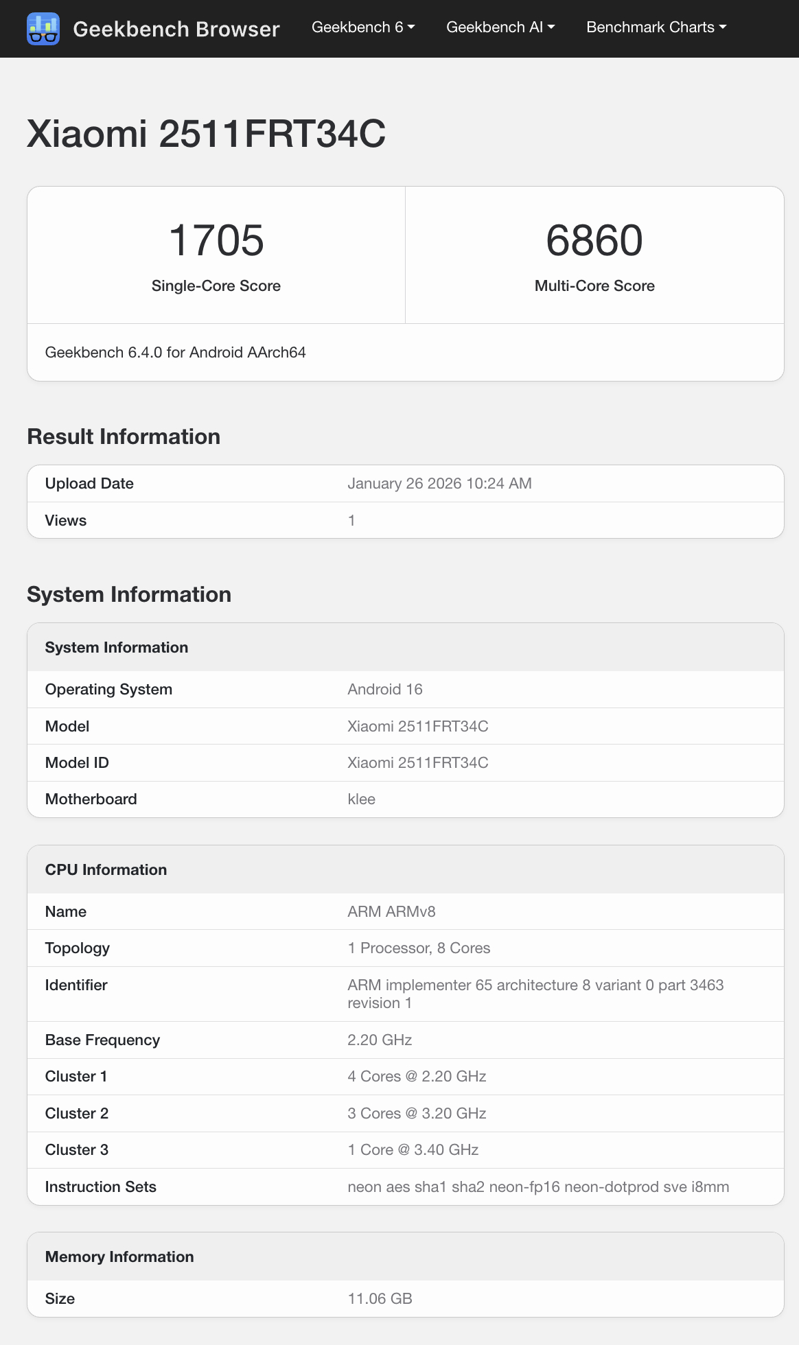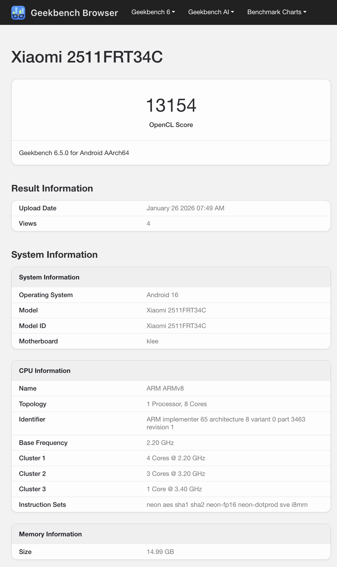 In particolare, il Redmi Turbo 5 e il suo chipset Dimensity 8500 hanno ottenuto punteggi medi single-core e multi-core di 1.659 e 6.764 in Geekbench 6.5 mentre erano abbinati a 12 GB o 16 GB di RAM. Nel frattempo, il benchmark della singola GPU emerso finora vede il Redmi Turbo 5 ottenere un punteggio di 13.154.