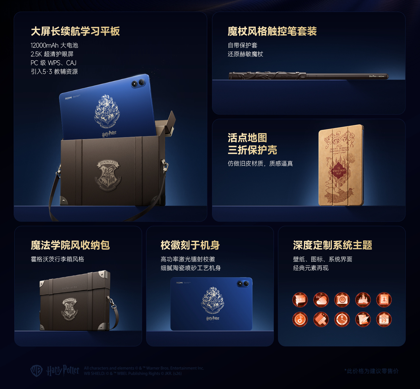 Allo stesso modo, tutte le varianti di Redmi Pad 2 Pro sfruttano un display da 2,5K e 120 Hz. Tuttavia, la Harry Potter Edition aggiunge diversi accessori esclusivi come una custodia, una cover folio e persino uno stilo personalizzato per assomigliare a una bacchetta. Inoltre, la Harry Potter Edition presenta un'esclusiva finitura blu con il logo di Hogwarts impresso sul retro.