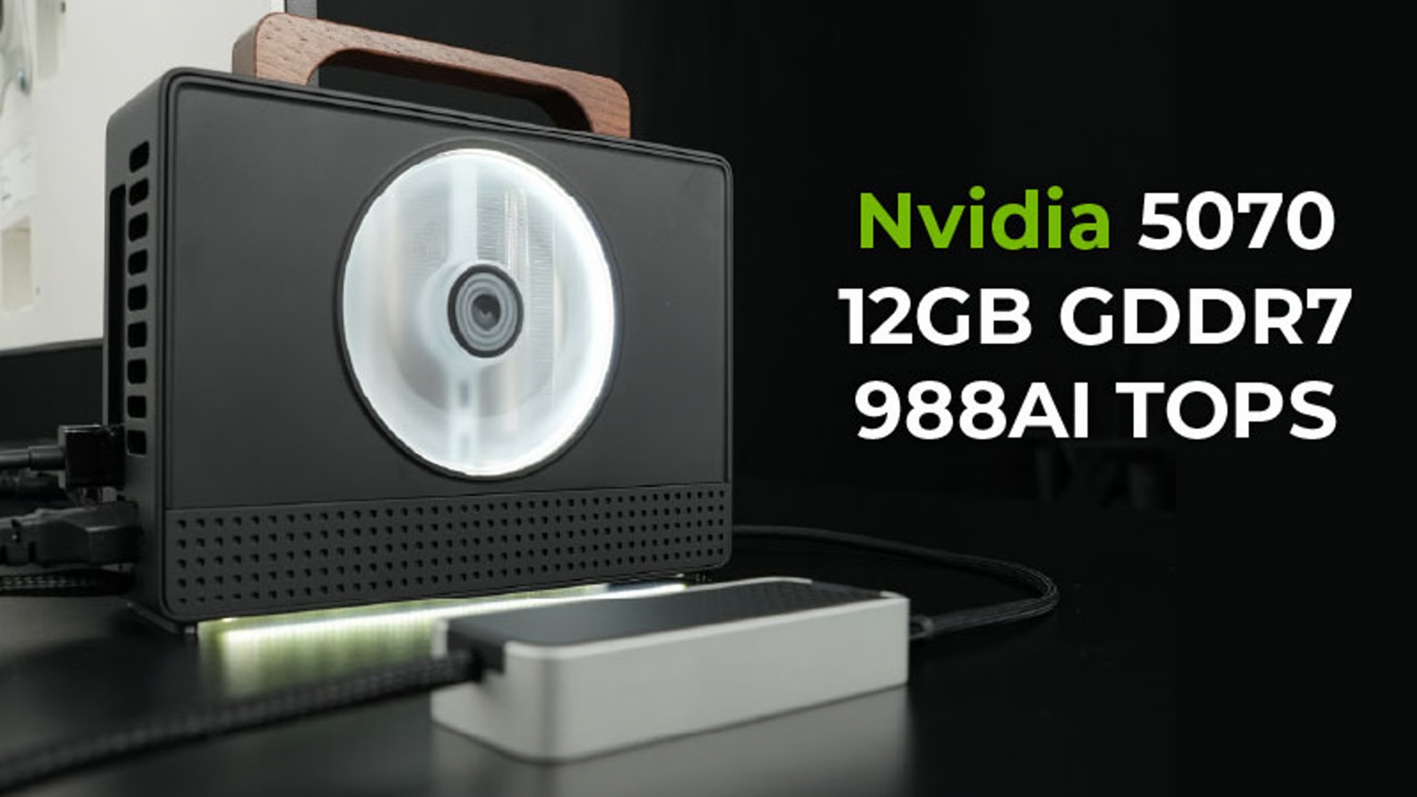 Il riepilogo della campagna rispecchiato da Backerkit elenca Nvidia GeForce RTX 5070 e RTX 5060 Ti configurazioni, un involucro da 1,86 L, compatibilità con il passato e una cifra da capogiro, fino a 988 AI TOPS. FabScene riporta che la versione RTX 5060 Ti ha 16 GB di memoria GDDR7, mentre il modello RTX 5070 ha 12 GB di GDDR7. Lo stesso rapporto afferma che la versione 5060 Ti è stata pensata più per i carichi di lavoro del creatore e dell'intelligenza artificiale locale, mentre la RTX 5070 si rivolge più direttamente al gioco.