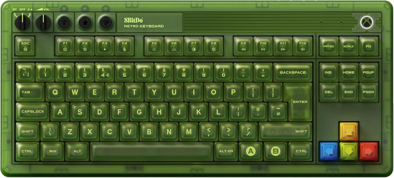 Oltre agli Stati Uniti (QWERTY), la tastiera meccanica 8BitDo Retro 87 Xbox Edition è ora disponibile nei layout UK (QWERTY), DE (QWERTZ), FR (AZERTY) e ES (QWERTY). La tastiera Retro 87 con un layout ISO UK ha un prezzo di £105 su Amazonche è un po' più alto della versione con layout USA, che ha un prezzo di listino di 99,99 sterline, ma è attualmente disponibile a 96,29 sterline.